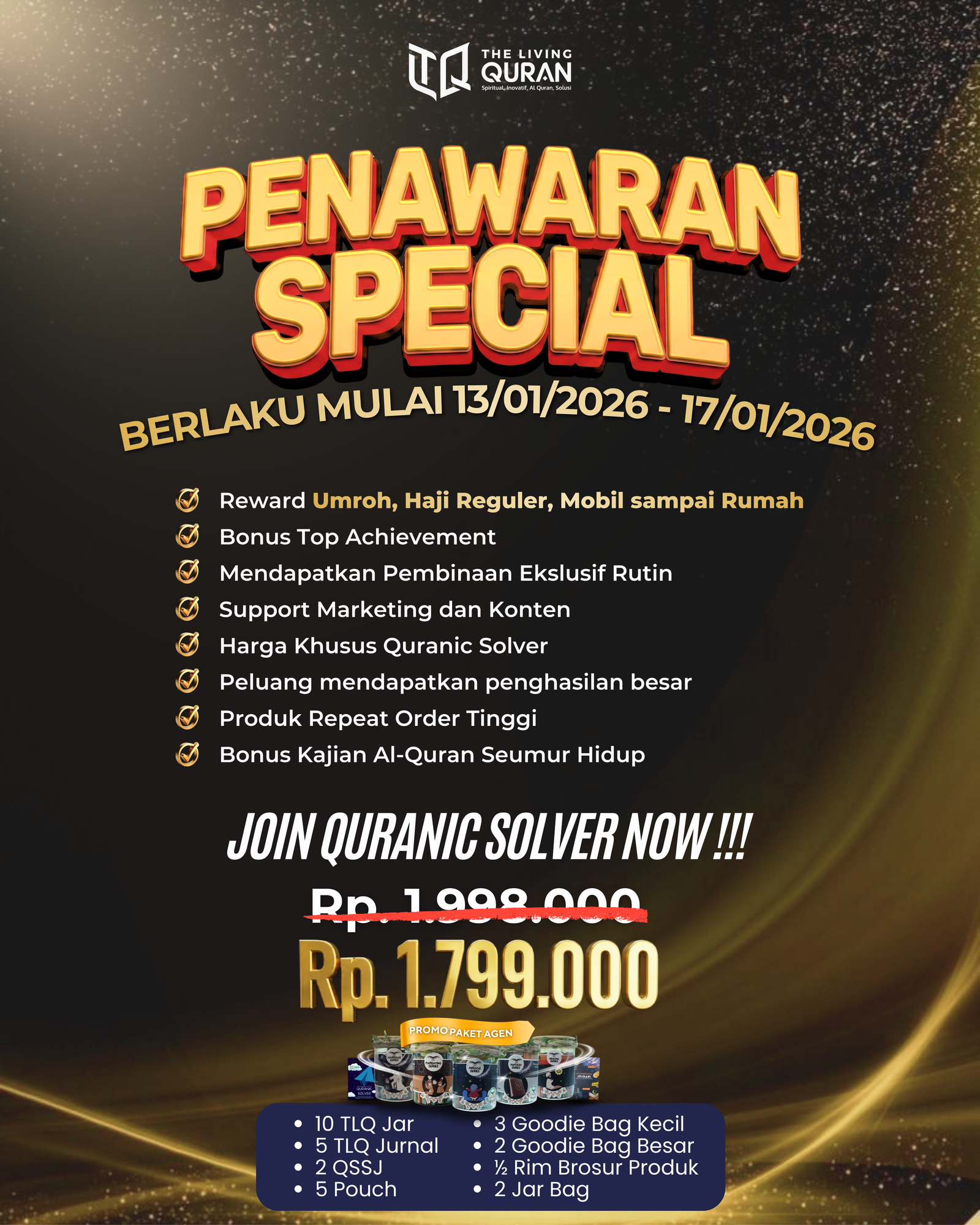 APa itu TLQ? Iya TLQ adalah program untuk mThe Living Quran Jar - TLQ Jar bukan sekadar toples cantik, tapi alat sederhana untuk membantumu meresapi ayat demi ayat, menghidupkan maknanya dalam keseharian. Dan Anda akan tercengang dengan KEAJAIBAN perubahan hidup yang akan Allah hadirkan padamu.elihat ada siapa disana
